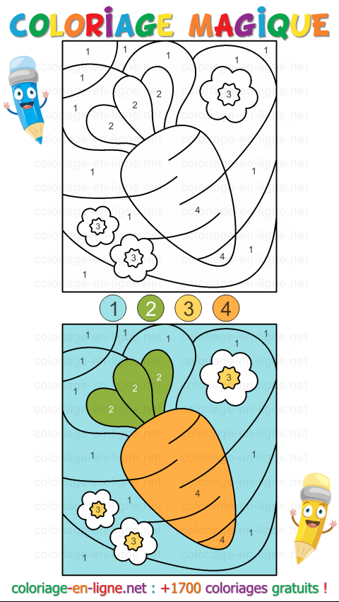 - Carotte Printanière (coloriage magique de 4 couleurs)