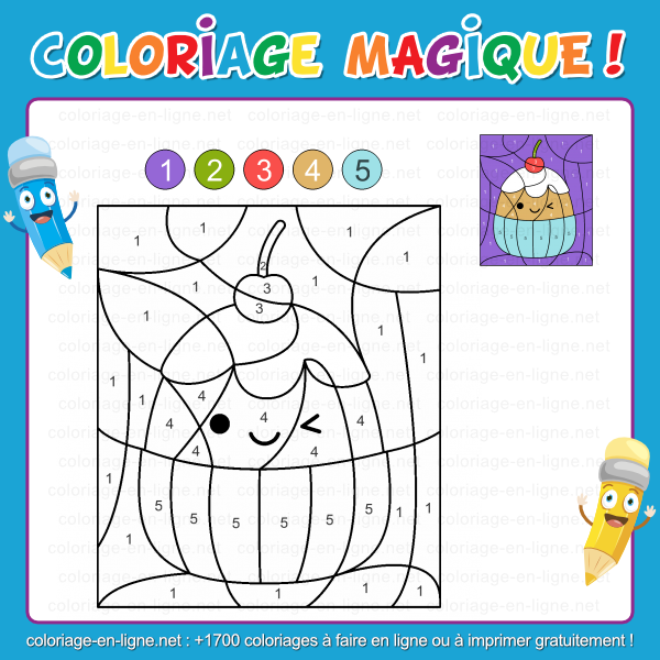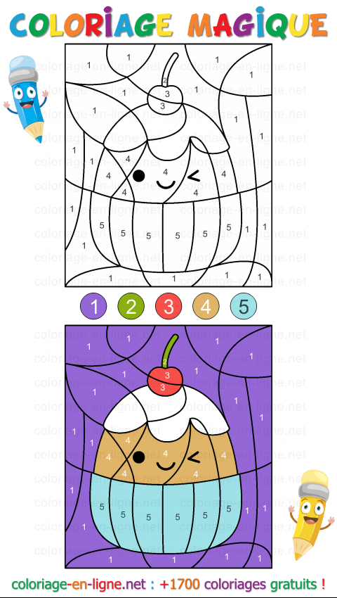 - Cupcake sourire (coloriage magique de 5 couleurs)