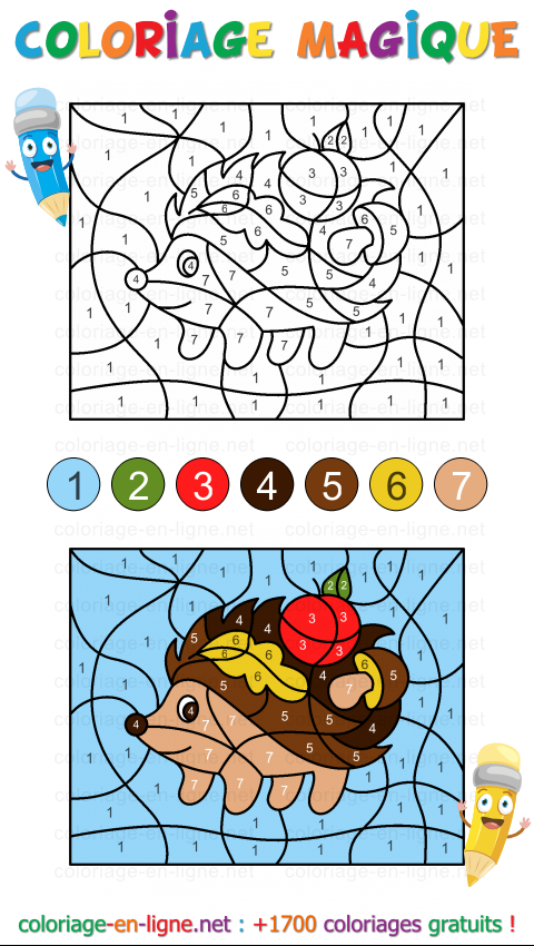 - Hérisson des sous-bois (coloriage magique de 7 couleurs)