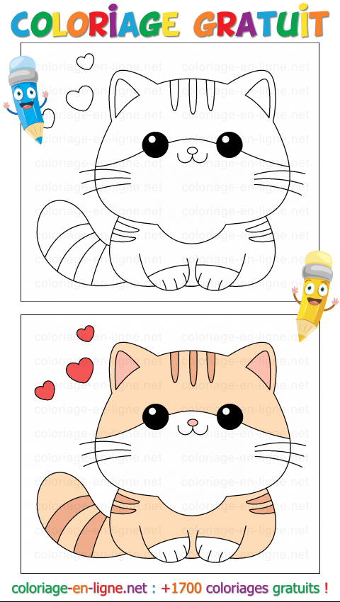 Ce coloriage peut être fait gratuitement en ligne, en cliquant simplement sur chaque zone avec la bonne couleur, ou bien imprimé si tu préfères utiliser tes doigts dâartiste en herbe et tes plus beaux outils à colorier. Câest une activité parfaite pour apprendre à observer les formes, suivre un modèle, sâappliquer⊠et surtout, se détendre en compagnie dâun chat trop craquant. Alors, prêt(e) à donner vie à Mimo avec ton talent et ta sensibilité artistique ?
