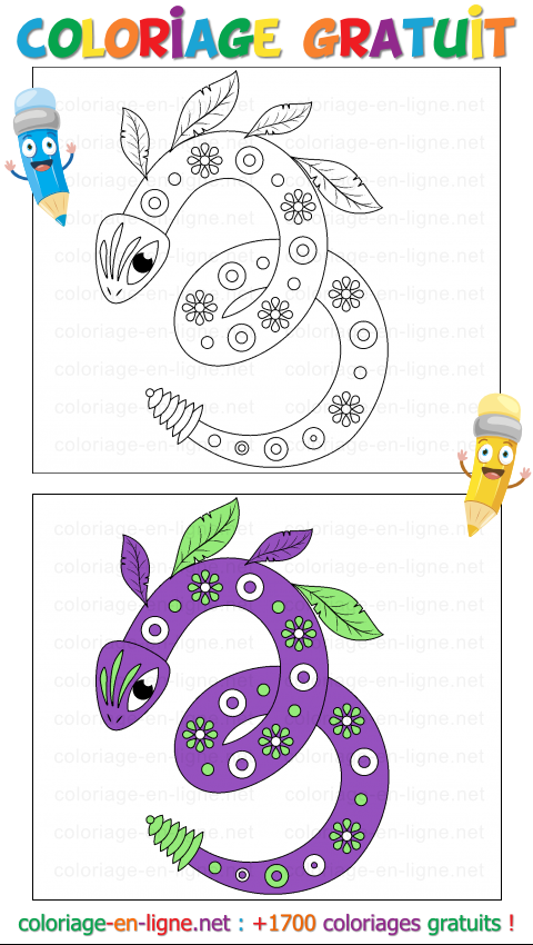 En coloriant ce dessin, tu peux découvrir comment un animal parfois redouté devient ici une figure poétique et joyeuse, un serpent qui ne fait pas peur mais qui invite à explorer l'imaginaire.