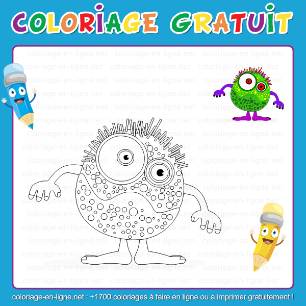 Les bactéries sont des organismes vivants de taille microscopique, que l'on ne peut voir qu'a l'aide d'un microscope. Si certaines bactéries sont utiles à lâêtre humain (pour la digestion des aliments par exemple), d'autres peuvent entraîner des troubles respiratoires ou intestinaux, et des maladies infectieuses. Pour ce coloriage en ligne, tu peux utiliser différentes nuances de vert pour le corps, du violet pour les bras et pieds, et des couleurs chaudes comme le rouge, l'orange ou le jaune pour les flagelles entourant la bactérie. Si tu aimes ce coloriage, regarde aussi notre coloriage du virus de la gripe...