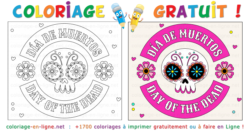 - Coloriage n°695 - Bannière rose (fête des morts mexicaine)