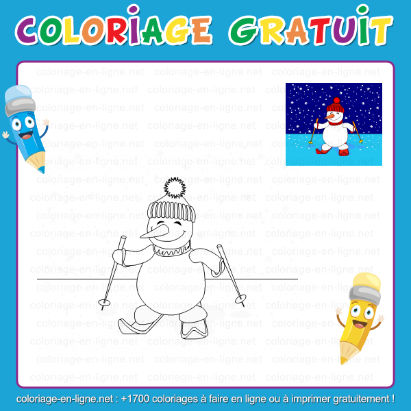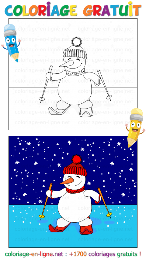 - Coloriage n°237 - Bonhomme de neige qui fait du ski