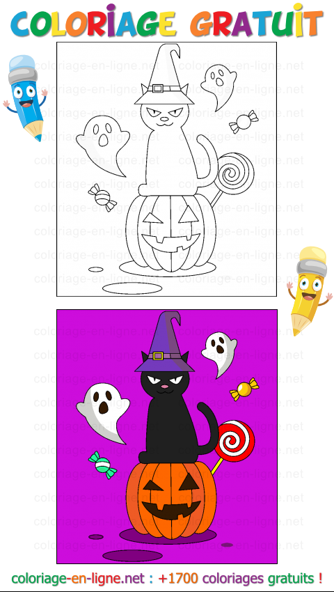 - Coloriage n°1072 - Chat noir assis sur une citrouille