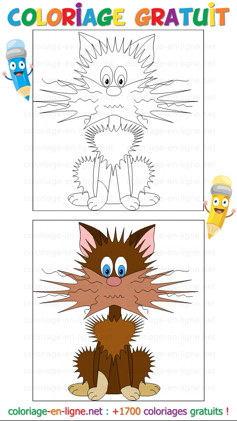 - Coloriage n°98 - Chat rigolo avec le poil tout hérissé