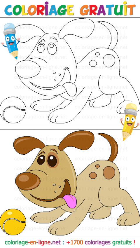 - Coloriage n°78 - Chiot rigolo jouant avec une balle de tennis