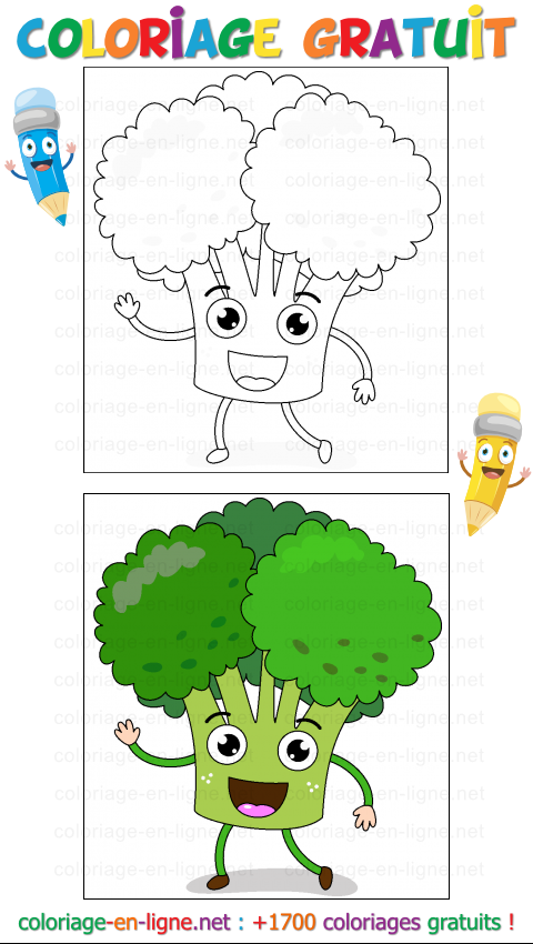 Pour le rendre encore plus stylé, amuse-toi à coloriser sa tige avec un vert clair éclatant, ses bras avec un vert tonique et sa chevelure feuillue avec un vert profond et intense. Donne-lui des yeux pétillants en noir et blanc, une bouche chocolat et framboise, et des petites mains couleur pêche prêtes à faire un high-five. Quand tu auras fini, ton brocoli ne sera plus un simple légume... mais un héros funky qui donne envie de sourire rien qu'en le regardant !