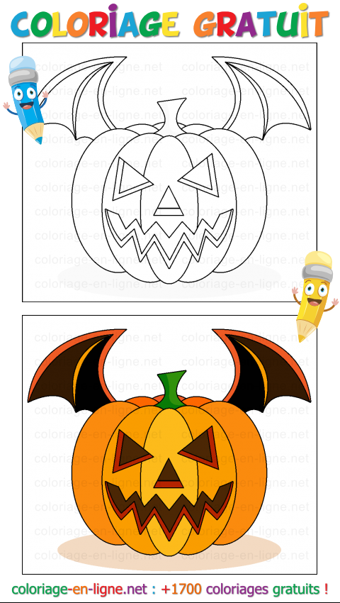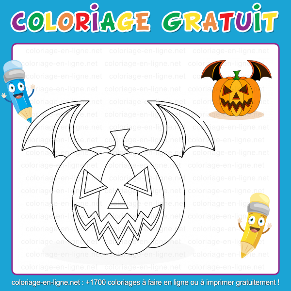 - Coloriage n°1455 - Citrouille d'Halloween chauve-souris