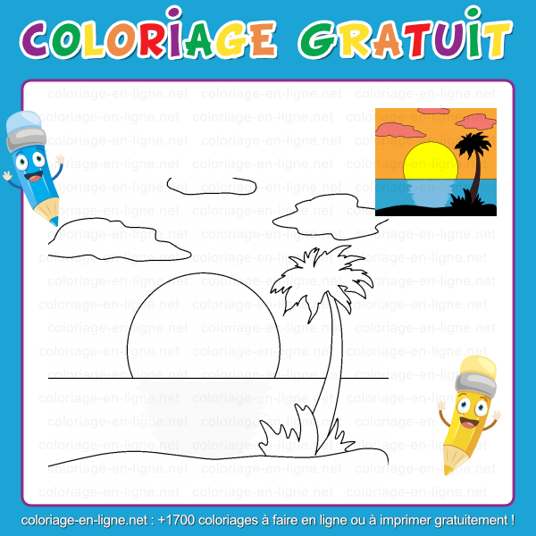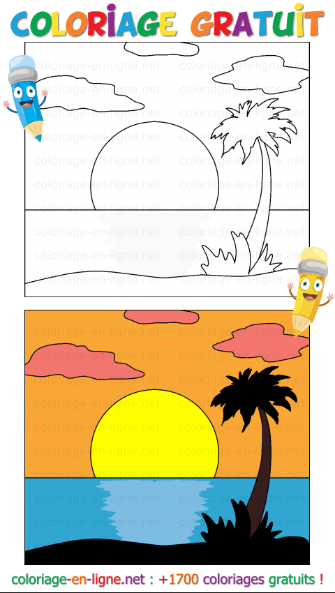 - Coloriage n°1326 - Coucher de soleil à la plage