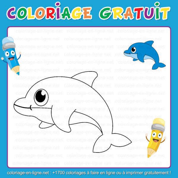 Sur ce coloriage, tu peux observer sa grande nageoire dorsale, ses nageoires pectorales et sa queue en forme de palette qui l'aident à se propulser. Tu peux le colorier en bleu, gris ou argenté, comme les dauphins réels, mais tu peux aussi t'amuser à lui donner des couleurs originales pour l'imaginer dans un océan magique. En coloriant ce dauphin, tu découvriras un animal fascinant, symbole de liberté, d'intelligence et d'harmonie avec la mer.