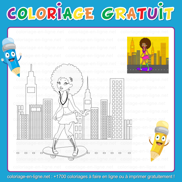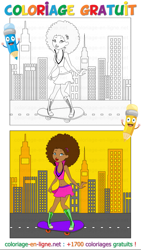 - Coloriage n°177 - Fille funky sur sa planche à roulettes