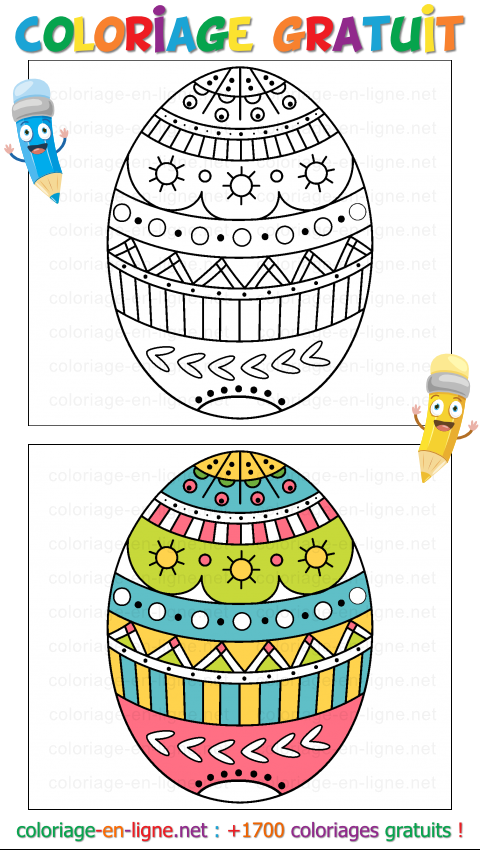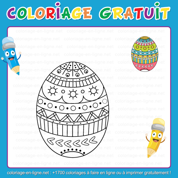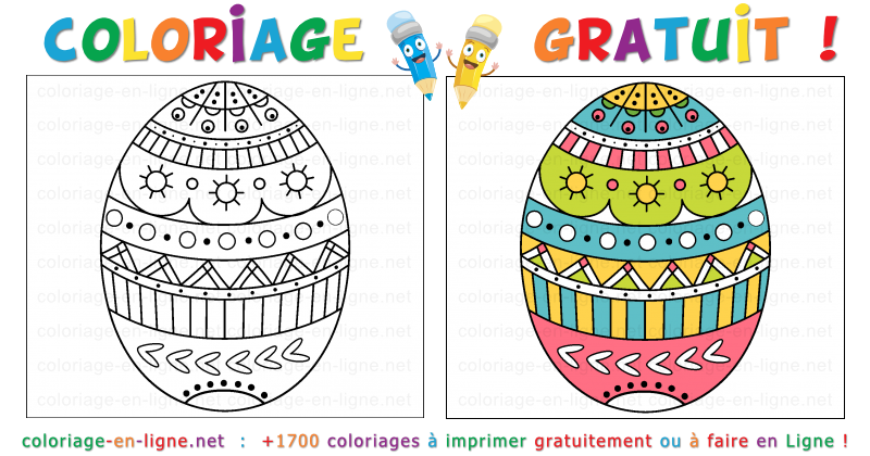 Ce coloriage à imprimer ou à colorier sur écran est parfait pour célébrer Pâques tout en s'amusant avec les formes et les couleurs. Ici, pas besoin de chercher un lapin ou un panier : l'Ćuf devient à lui seul une petite fête graphique ! On dirait presque qu'il a été décoré avec patience par un lutin du printemps, entre deux cloches en chocolat et trois brassées de confettis colorés.