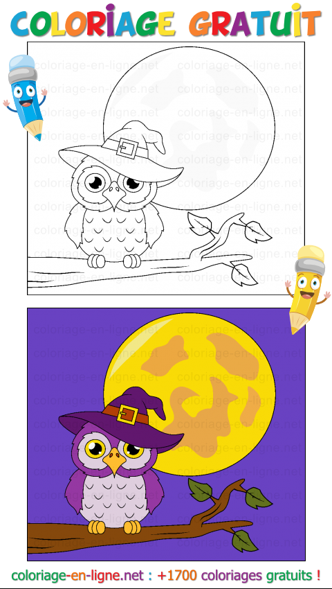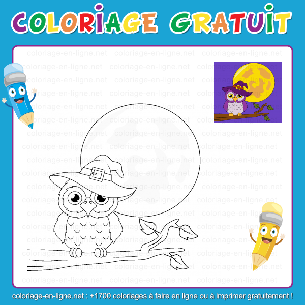 - Coloriage n°1426 - Hibou d'Halloween sous la pleine lune
