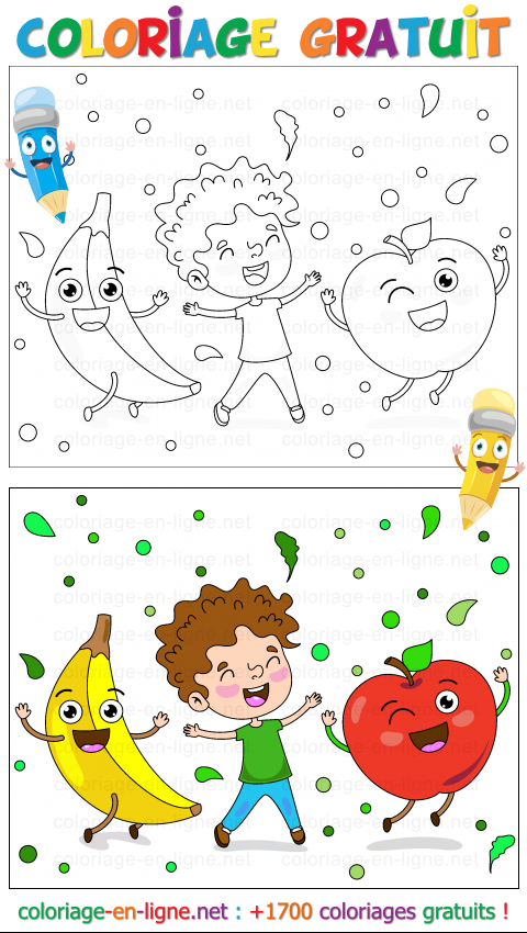 - Coloriage n°765 - Garçon dansant avec une pomme et une banane