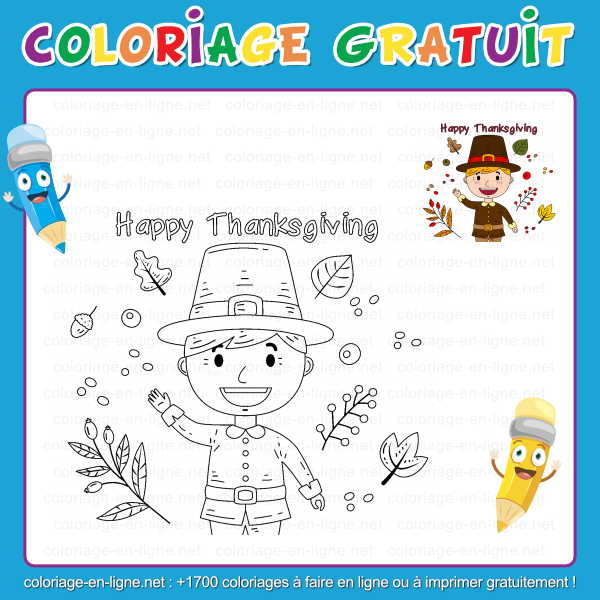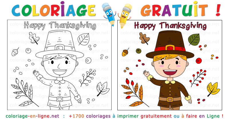 Ce coloriage gratuit, à imprimer ou à coloriser en ligne, est idéal pour célébrer Thanksgiving de façon créative et éducative !