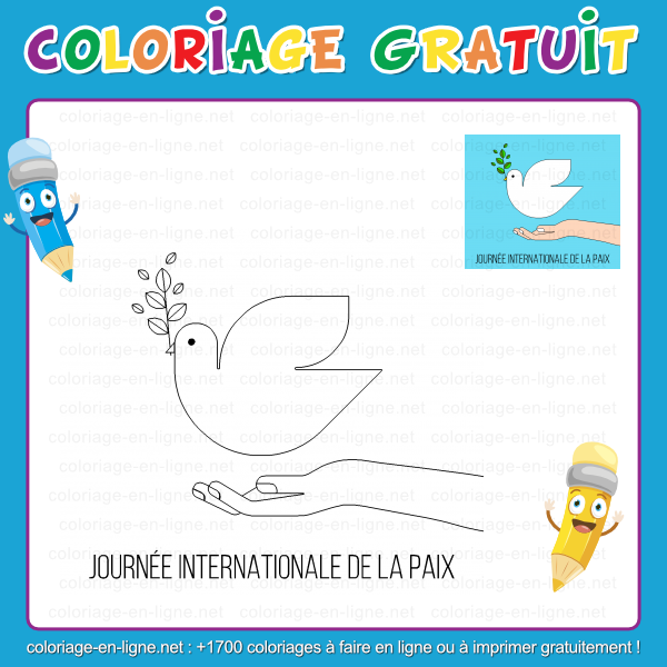 Chaque 21 septembre, le monde se met à l'unisson pour célébrer la Journée internationale de la paix, un moment précieux où les cĆurs et les esprits s'ouvrent à l'harmonie. Ce coloriage en est le symbole délicat : une main tendue, douce et protectrice, porte une colombe blanche, messagère universelle de paix depuis l'Antiquité. Dans son bec, elle tient un rameau d'olivier, promesse d'espoir et de réconciliation, qui traverse les âges et les cultures. L'image invite à réfléchir à la fragilité de la paix : elle se construit et se protège, comme on prend soin d'un oiseau posé dans le creux de la main.