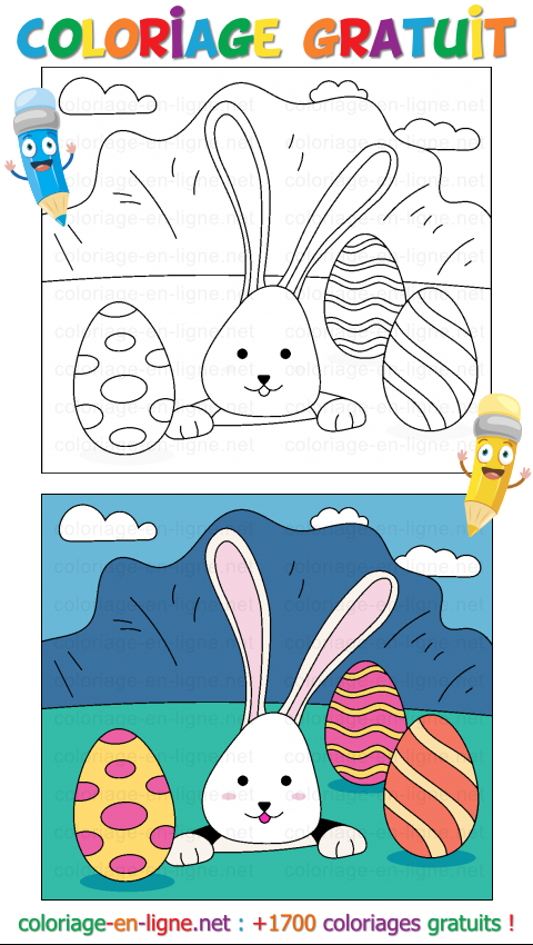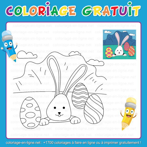 - Coloriage n°1260 - Lapin à la chasse aux oeufs de Pùques