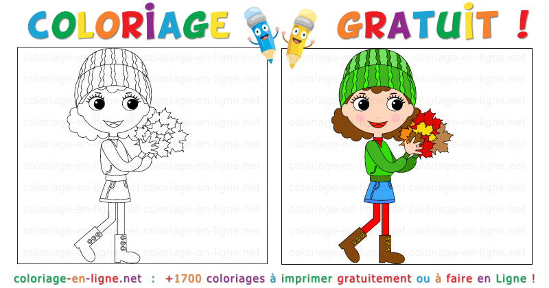- Coloriage n°368 - Léa ramasse des feuilles d'automne...