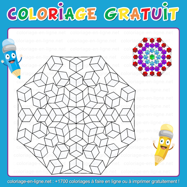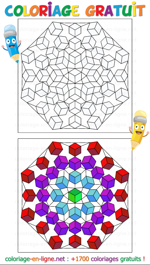 - Coloriage n°1151 - Mandala géométrique avec des cubes 3D