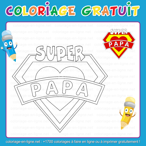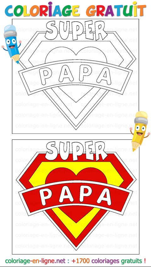 Ce coloriage peut être réalisé en ligne, ou bien imprimé pour fabriquer une vraie carte, à offrir ou à coller sur le frigo comme un trophée. Et si tu choisis de le faire à la main, tu peux même décorer les contours avec des paillettes, des étoiles ou des mots doux ! Parce que parfois, les papas n'ont pas besoin de cape : il suffit d'un coloriage fait avec amour.
