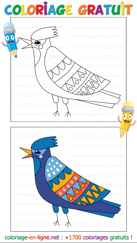 - Coloriage n°1201 - Oiseau stylisé et coloré