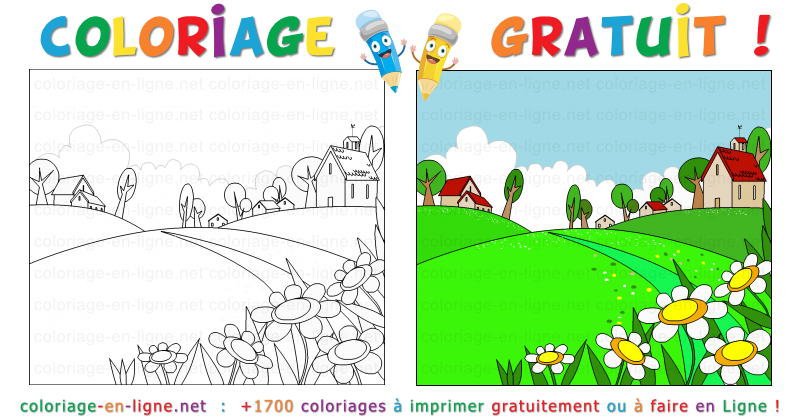 - Coloriage n°127 - Paysage verdoyant de prairies