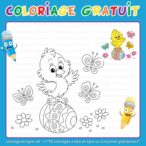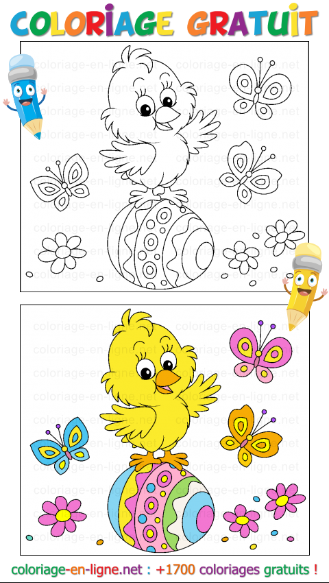 - Coloriage n°1557 - Petit poussin avec un Ćuf de PĂąques