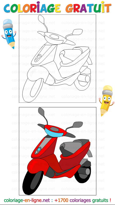 Prêt à rouler ? Voici un scooter moderne qui n'attend que tes couleurs pour prendre la route ! Ce véhicule à deux roues est très apprécié en ville, car il est léger, pratique et facile à manier. Il permet de se déplacer rapidement sans prendre trop de place et consomme moins d'énergie qu'une voiture. Certains scooters fonctionnent même à l'électricité, ce qui les rend plus respectueux de l'environnement, car ils ne rejettent pas de fumée polluante.