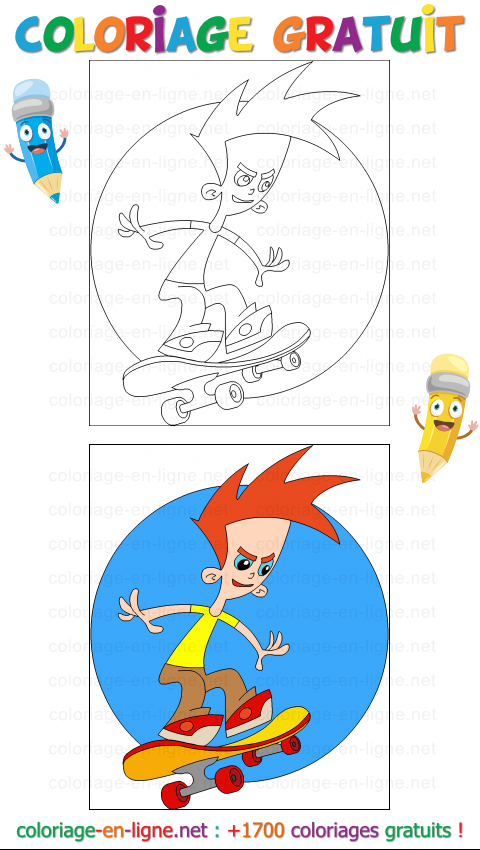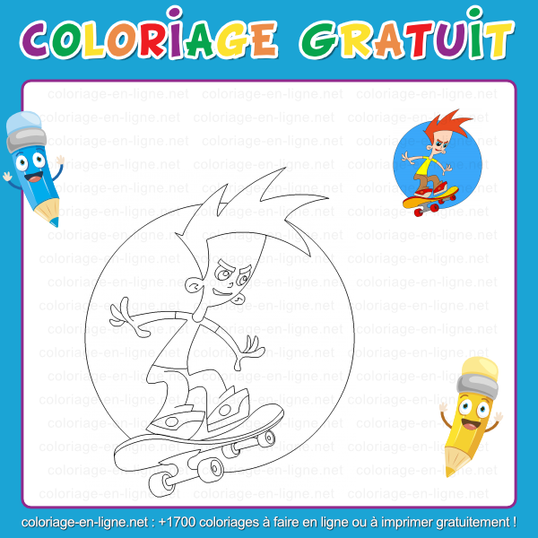 - Coloriage n°85 - Skater Boy sur sa planche à roulettes