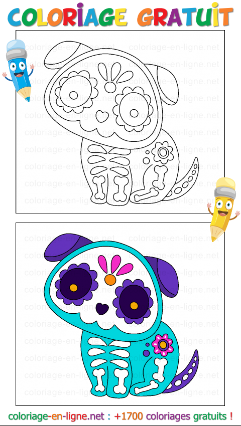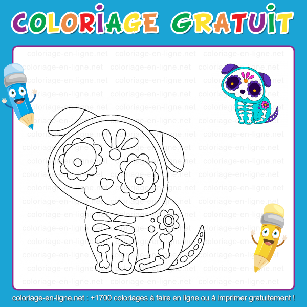 - Coloriage n°1462 - Squelette de chien (fĂȘte des morts mexicaine)