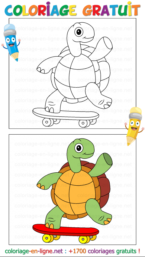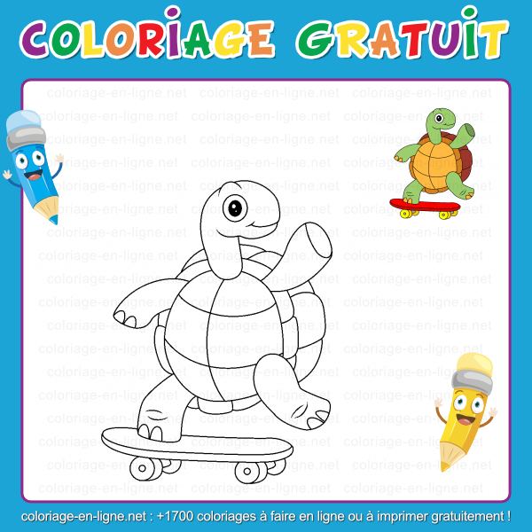 - Coloriage n°1562 - Tortue rigolote sur une planche à roulettes